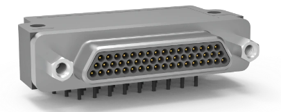 加固型 Micro-D 連接器, 微型, 0.050“/1.27mm間距, 高溫, 金屬主體, 電路板安裝, 電鍍通孔(PTH), 直角插頭, 窄尺寸, 帶安裝耳。2、3、4 排,尺寸:9-100。